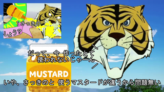 色的にヘラジカがBBQソースでライオンがマスタードっぽくない?っていう安直な考え